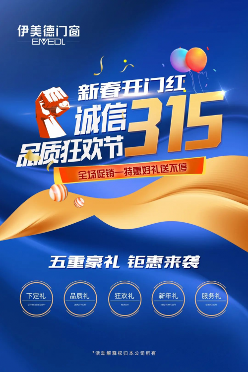 誠(chéng)信3·15,品質(zhì)狂歡節(jié)!伊美德五重豪禮,席卷全國(guó)!
