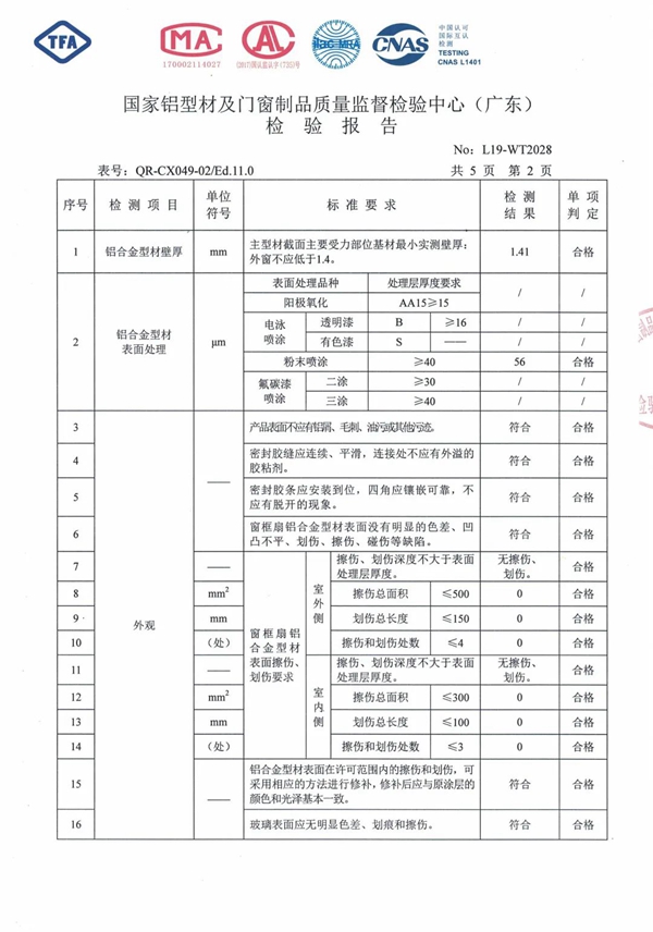 經(jīng)國家權(quán)威部門機構(gòu)檢測,伊美德斷橋平開窗不僅表面處理、外觀、尺寸等達到國家標準,其抗風(fēng)壓、密封性、水密性等性能均處于相當高甚至最高級別: