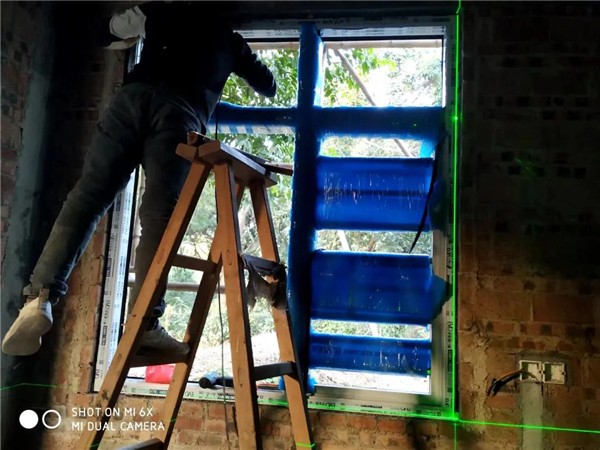 對每一處的窗框采用專用儀器調(diào)整水平與垂直度。
